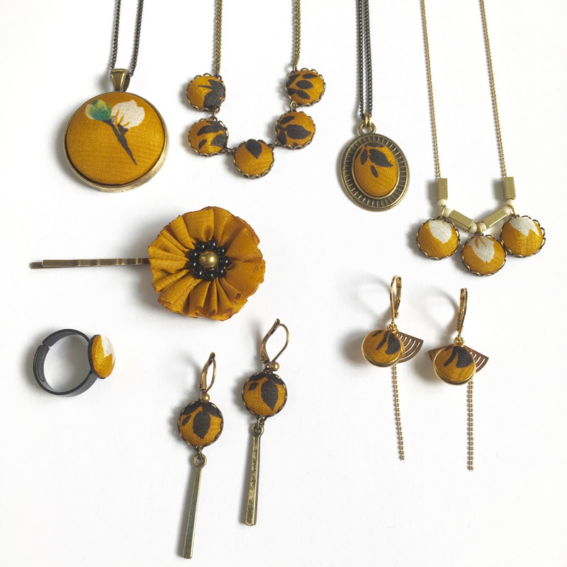 Mina Lou évolue au fil des années. De nouveaux matériaux apparaissent en fonction de ses inspirations, la gamme s'élargit et se veut plus variée qu'à ses débuts. A l'utilisation du tissus dans ses bijoux peuvent s'ajouter des pierres semi précieuses, des éléments vintage...